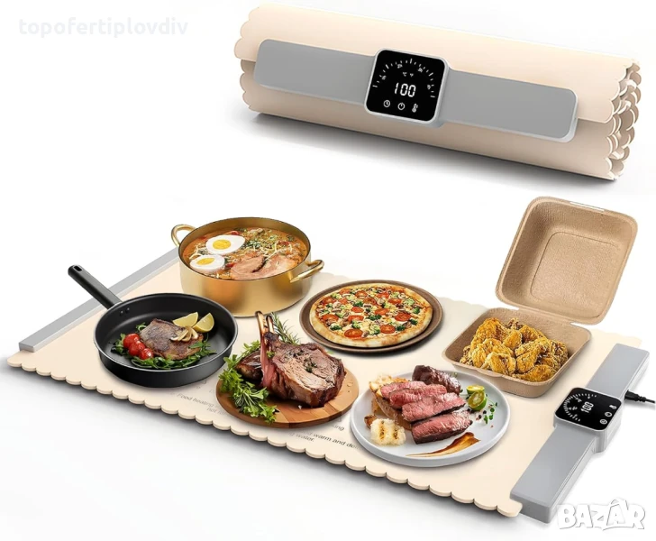 【Регулируеми температурни контроли и 5-степенен таймер】С 5-степенен контрол на температурата, нагревателят за храна осигурява прецизно загряване за различни видове ястия, което ви позволява да се насладите на всяка хапка при оптимална температура. Настройте го да поддържа топлината до 4 часа, като храната остава вкусно топла без компромис. Поддържа два температурни дисплея, от които да избирате (°C и °F). 【Удобно съхранение на руло】Навиващата се нагревателна подложка е преносима, което позволява лесно навиване и съхранение в чекмедже или чанта, когато не се използва, спестявайки място. Може бързо да се разположи на масата за хранене само за 3 секунди, когато е необходимо.
