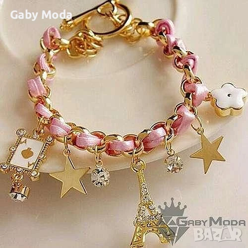 Дамска гривна с цветни мъниста и Айфеловата кула в 2 цвята → Обява 51065936