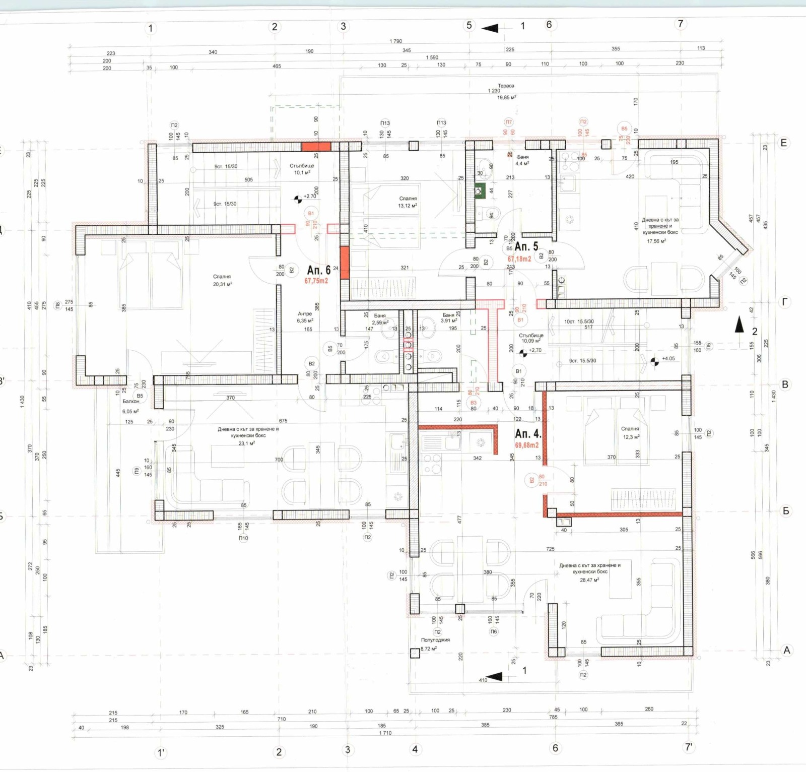 Вътрешното разпределение включва единадесет апартамента: девет двустайни, един тристаен и един мезонет. Всеки имот е с отделен нотариален акт и самостоятелна функционалност, която позволява гъвкаво управление, отдаване под наем или поетапна реализация. Всички жилища са напълно завършени и в момента са отдадени на наематели при надсредни пазарни условия, което осигурява стабилен месечен приход.