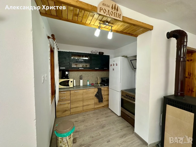 Дневната се отоплява с камина на дърва, а спалните с електрически конвектори. Вилата разполага с общ санитарен възел 🚿🚽(баня и тоалетна). На разположение са пералня със сушилня, ютия и сешоар.
