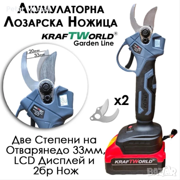 ✅ Акумулаторна лозарска ножица с LCD дисплей и четири степени на отваряне,