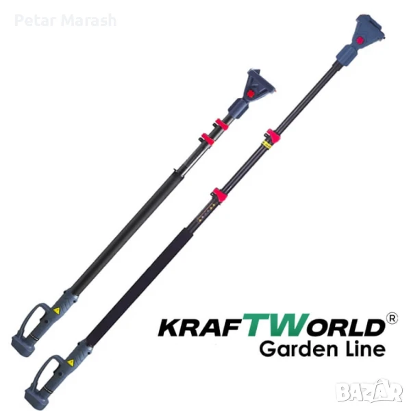 3в1 Акумулаторен Градински Комплект KraftWorld – Резачка с омасляване, Ножица и Телескопичен Прът
