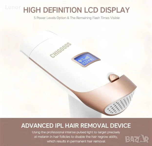 Насладете се на гладка кожа с иновативния IPL епилатор от Chigoods®, съчетаващ безопасност, ефективност и удобство. Подходящ за мъже и жени.