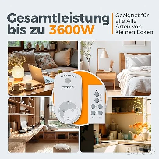 Радио контактът с дистанционно управление е предварително програмиран и готов за употреба. Контактът с дистанционно управление е с мощност 3600 W, за да отговори на нуждите на множество устройства.