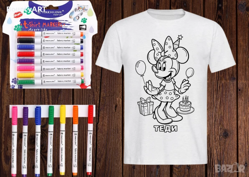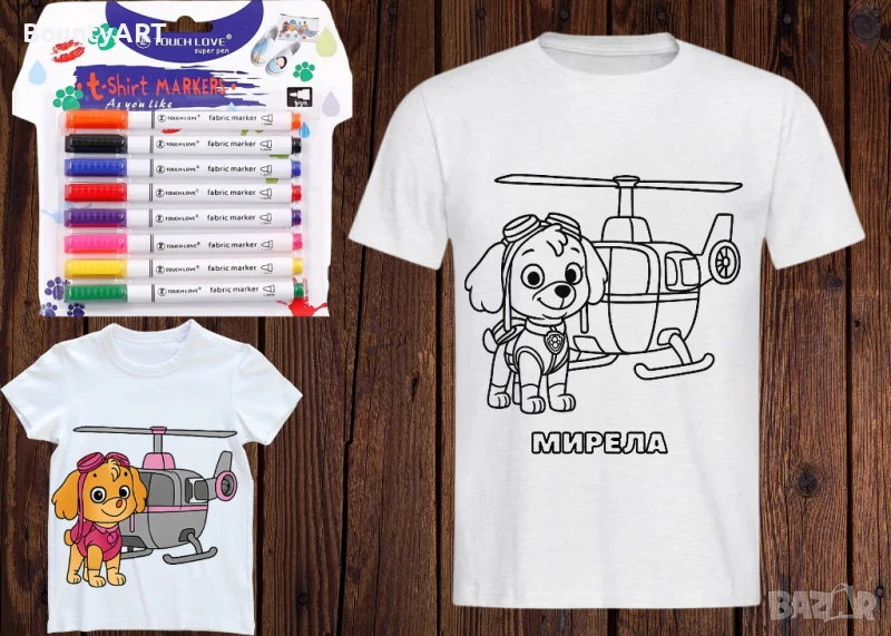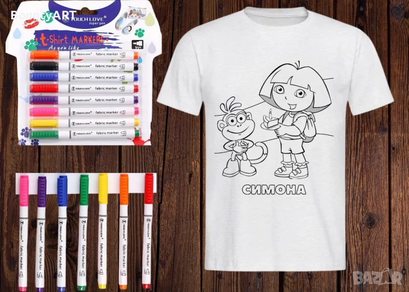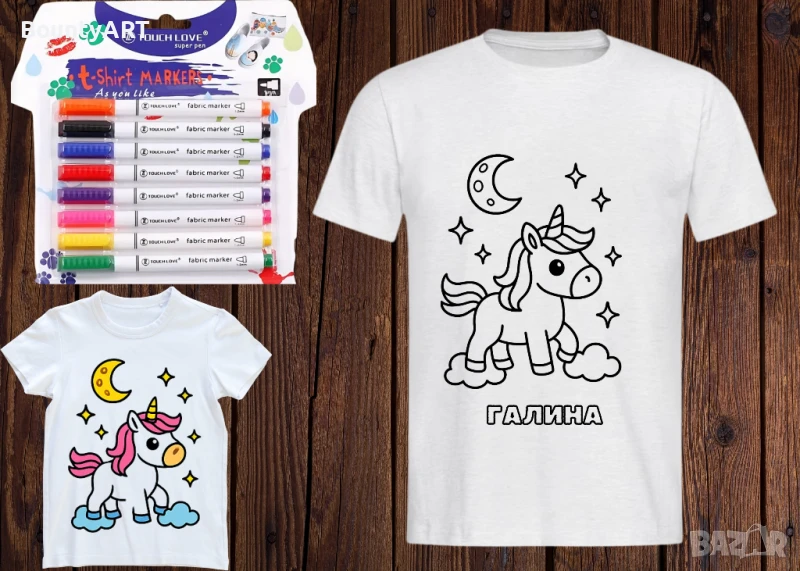 Детски Арт комплект за оцветяване. Тениска+ маркери → Обява 51067448