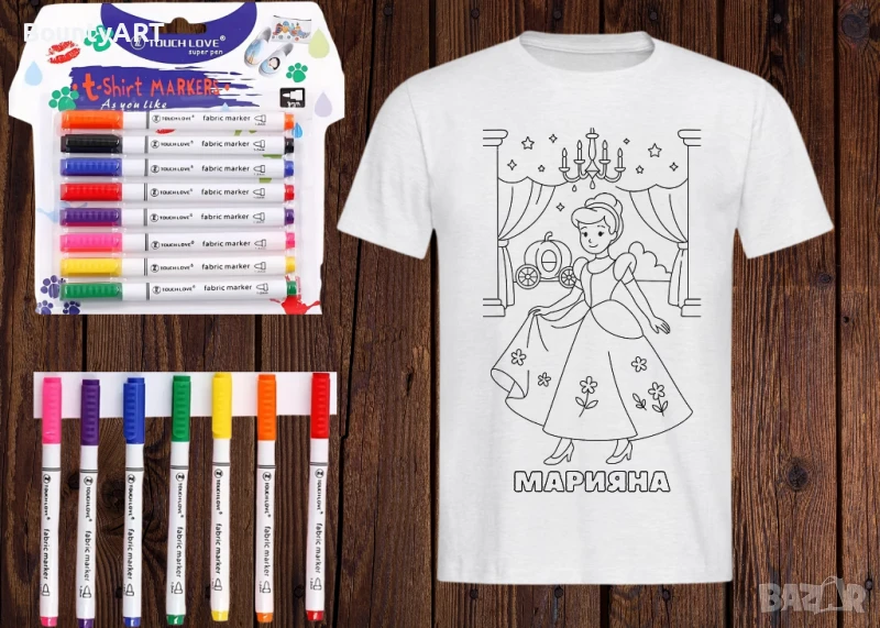 Детски Арт комплект за оцветяване. Тениска+ маркери