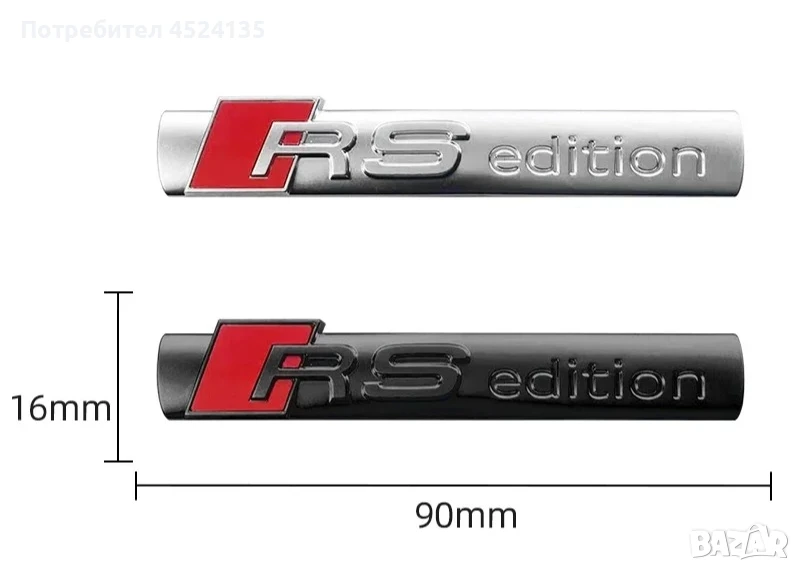 Нови емблеми ”RS Edition” за АУДИ - 90 мм./16 мм. → Обява 51067772