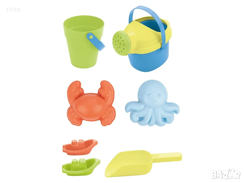 - Включени аксесоари: лейка, лодки, формички за пясък, кофа и лопата