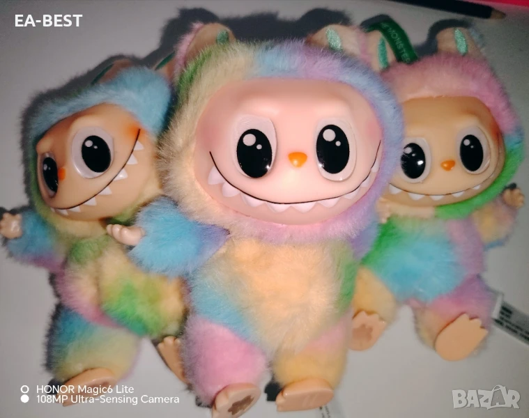 Със своето ярко многоцветно тяло, големи блестящи очи и широка усмивка, Labubu е истински фаворит за подарък, колекция или просто добро настроение!