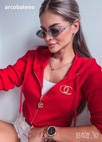 Дамски червен памучен суичър с цип