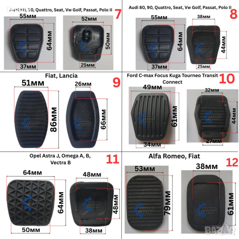 10. Гумичка за педал Ford C-max Focus Kuga Tourneo Transit Connect 61 х 49 х 34мм - 6,00лв 3,07€
