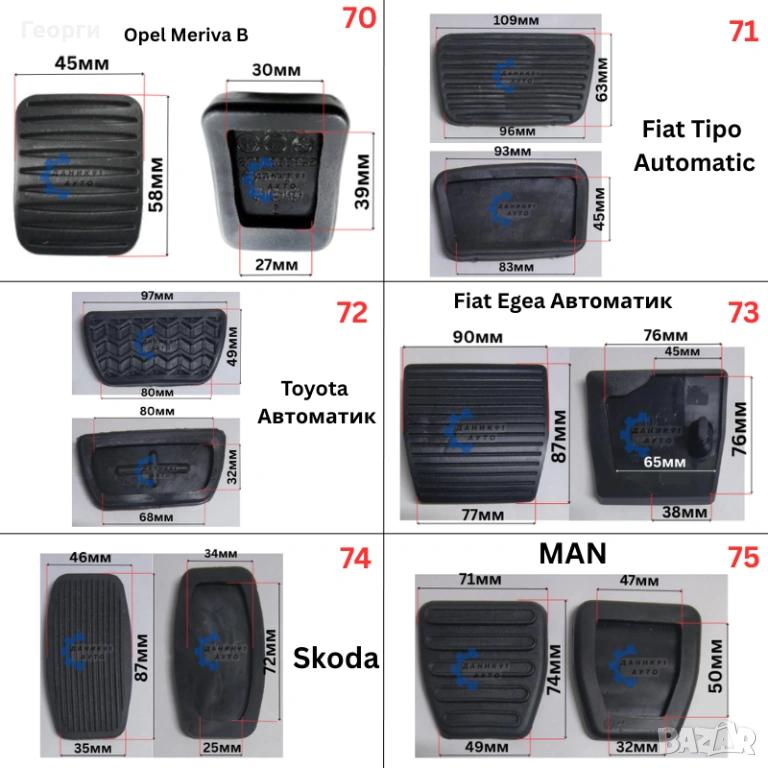 17. Гумичка за педал Universal 66 х 52 х 44мм - 4,00лв 2,05€