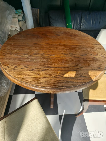 Австрийски наследствени мебели Много масивни и тежки особенно масата.Размер маса вис 75 .77 см според формата диаметър 111 .113 см .Столовете обща височина 85 см .Височина от пода до седалката 45 см Дълбоки 40 см .Мебелите са много стабилни нямат счупвания или други сериозни забележки .Нуждаят се от освежаване с лак или каквото решите .Не се продават отделно.Към него подарявам масивен дървен стол с ратан стил Ван Гог .Взимане само от място .Крайна цена