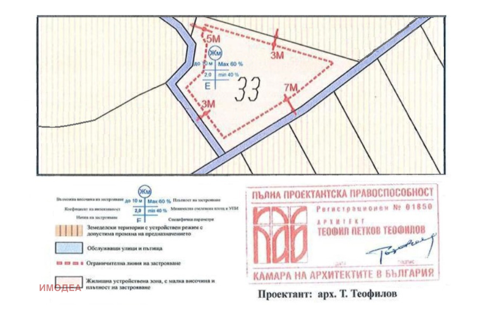 Имодеа ви предлага за продажба поземлен имот в местност Картала , гр. Велико Търново с площ 2000 кв.м и действащ ПУП за промяна предназначението му за жилищно застрояване. Градоустройствените параметри са: - Плътност на застрояване (П застр.) = маx 60% (обща застроена площ на сградите маx 1200 кв.м) - Коефициент на интензивност (К инт.) = 2.0 (обща разгъната застроена площ на сградите max 4000 кв.м) Размерите и формата на имота позволяват голямо разнообразие в застрояването. Разположен е на асфалтов път с лице 64м на югоизток, на 200м от съществуващата застройка на кв. Картала . Граничи и с неасфалтов път с лице 56м на югозапад. Имотът е с отлична панорамна гладка. Има разрешение за строеж на ограда. В близост има източник на ел. захранване.