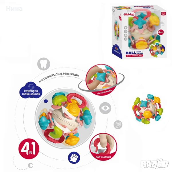 - 4 в 1- гризалка и дрънкалка, развива фината моторика