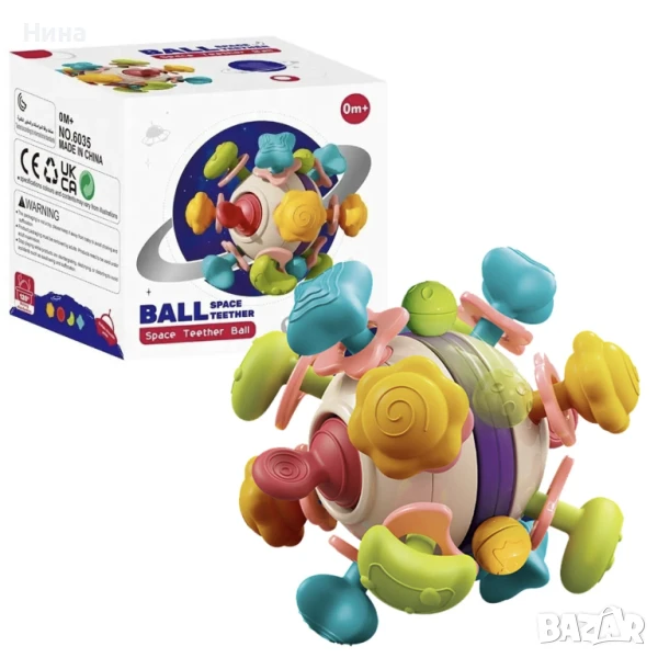 Бебешка сензорна топка/ чесалка за гризкане при никнене на зъбки с космически елементи 🛰🪐🚀🌍