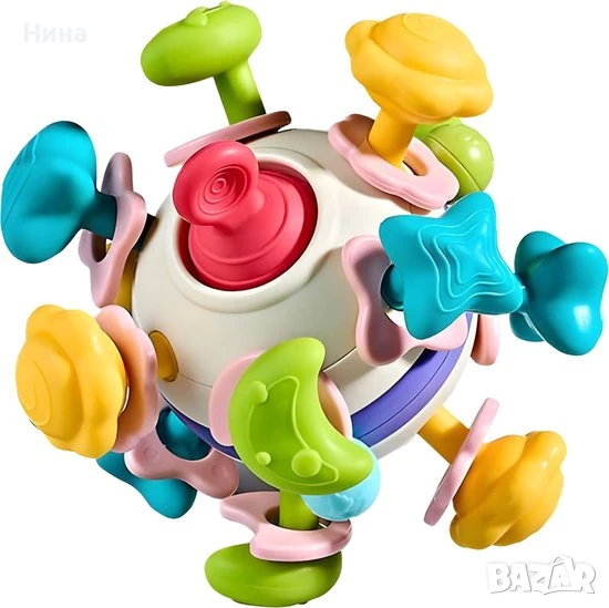 Цветната дрънкалка с форма на топка е идеална играчка за най-малките, пълна с малки формички и проектирана с мисъл за бебетата. Формата и размерът са съобразени с уменията и нуждите на децата. Дръжките на дрънкалката са изработени от гума, което осигурява комфорт при употреба. Описание: