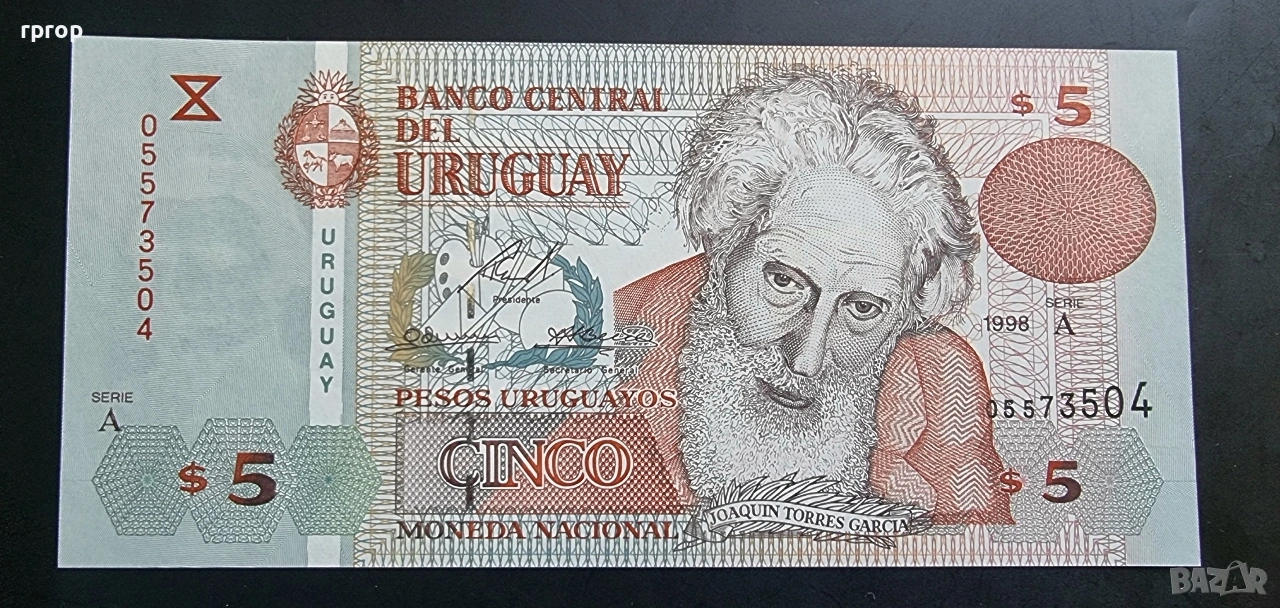Уругвай. 5 песо. 1998 година. UNC., снимка 1 - Нумизматика и бонистика - 51070265 Уругвай. 5 песо. 1998 година. UNC., снимка 2 - Нумизматика и бонистика - 51070265 1/2