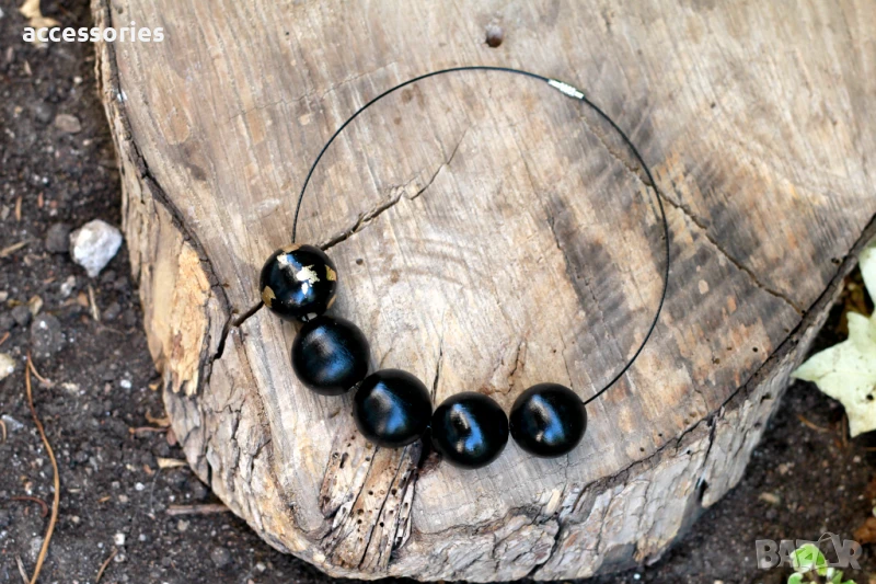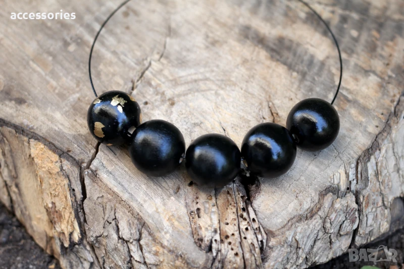 Търсите нещо различно, стилно и с характер? Представяме ви нашия нов модел – гердан с големи черни дървени мъниста, фино лакирани за нежен блясък и декорирани с златисти акценти за доза шик и индивидуалност.