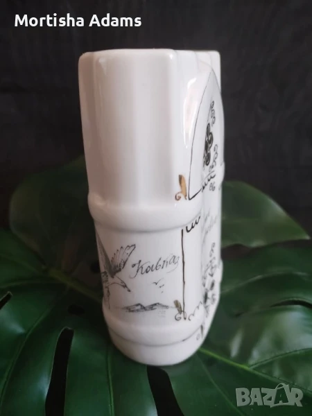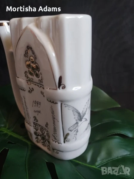 ⚜️ Руски курортен съд за минерална вода, гр. Ессентуки, 1989г. Произведен от Кисловодская фабрика сувениров (Кисловодск). Маркировката е използвана след 1980г. Височина 12см./ 230мл. до ръба. Съдът е здрав, със забележки на позлатата.