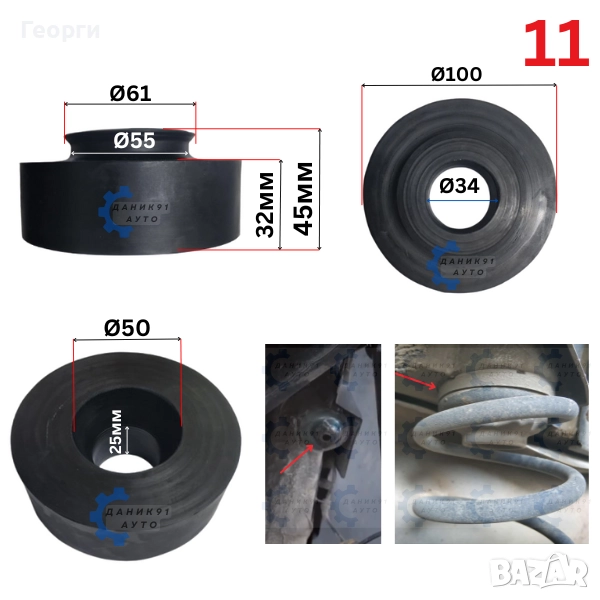 11. Подложка пружина задна Audi A3, Seat, Skoda Vw Golf 5, 6, Passat 6 Ф61 Ф100 32мм - к-т два броя - 36,00 лв. ( 18,41 € )