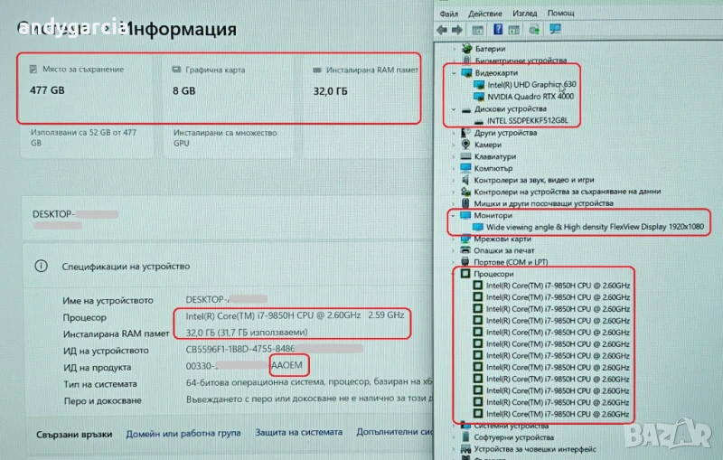 - стикер и вграден лиценз за Windows 10/11 Pro - ААОЕМ.
