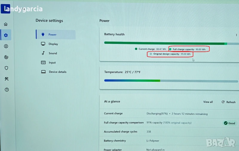 - батерия на 91% от реалния си 99Wh капацитет, 91Wh капацитет и издържливост до 3:00-4:00 часа в зависимост от натоварването.