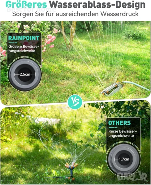 [Подобрен воден порт и изход]: Горният порт е изработен от 40% подсилен найлонов материал, който може да издържи на водно налягане до 116 psi/8 бара и е по-устойчив на удар и износване. Диаметърът на изхода е удължен до 23 мм, което увеличава водния поток и покрива по-широк обхват на напояване.