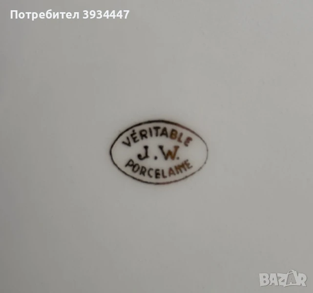 Произведена от J.W. – Véritable Porcelaine, автентичен винтидж порцелан от средата на XX век, най-вероятно френски или немски произход.