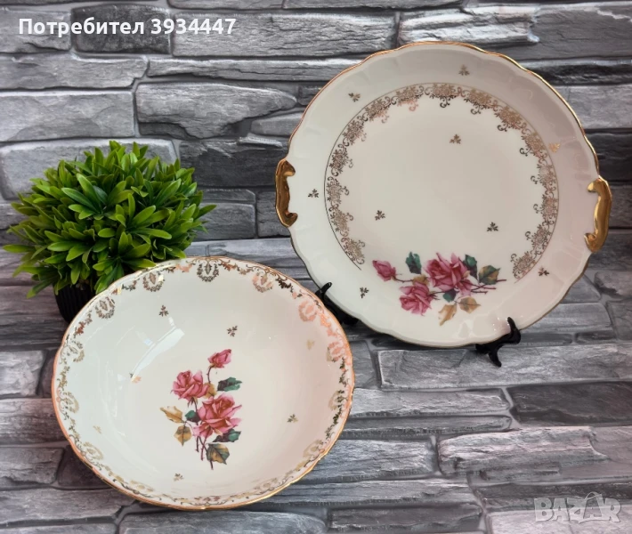Винтидж порцеланова чиния с дръжки и купа за салата J.W. – Véritable Porcelaine → Обява 51073209