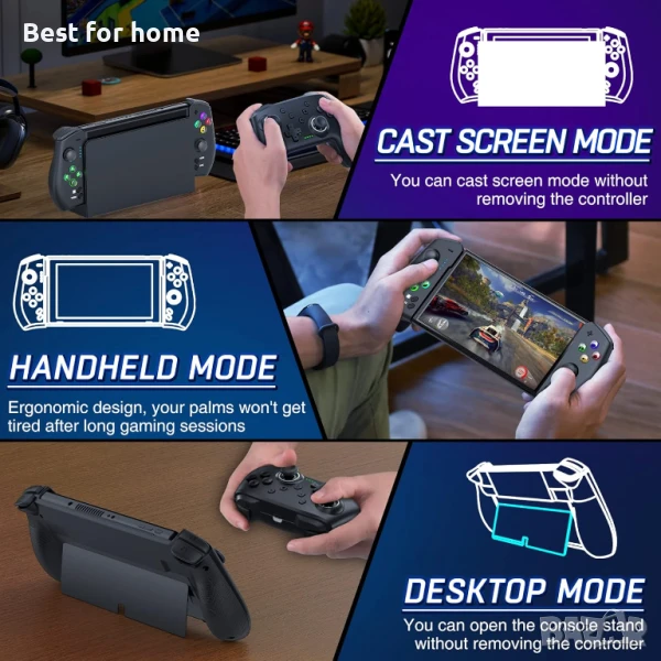 【Режим за преносим и настолен телевизор с докинг станция】Когато контролерът е поставен в конзолата, можете да изпитате тръпката от потапянето в ръчно управление. Когато приятели ви посещават, можете лесно да поставите телевизора на докинг станцията, без да сваляте контролера, и да споделите радостта с приятели. Можете също така директно да отворите задната част на стойката на конзолата на работния плот, за да се насладите на режим на настолен компютър.