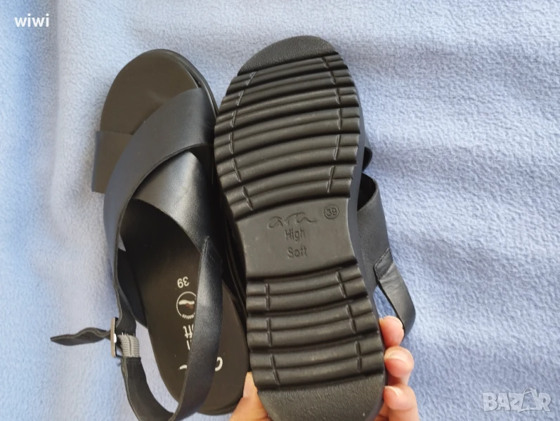 Сандалите са в отлично състояние.Обувани са един,два пъти.Изработени са от мека естествена кожа.Много комфортни и удобни.Стилни и практични.Анатомична подметка.Номер 39 с дължина на стелката 25,5см. Цена 55лв.
