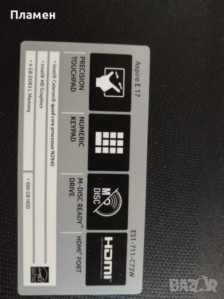 продавам ACER ASPIRE A17 нов лаптоп закупен от Медиямаркт лаптоп 17 инча идеален е за филми игри музика и за работа