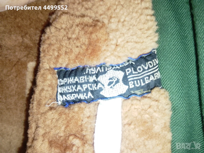 (кафява ) от дебел импрегниран шлиферен плат със сваляща се подплата от агнешка кожа, употребявана и следи от износване по ръкавите и шевовете за закопчаване. Подходяща за пастири,