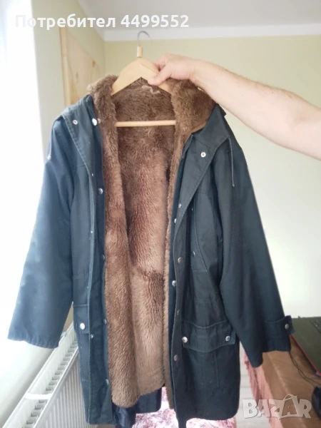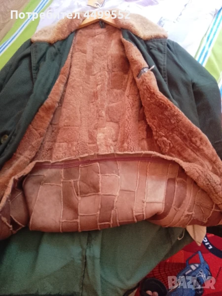 (зелена ) от импрегниран шлиферен плат със сваляща се подплата от агнешка кожа, употребявана но добре запазена.Подходяща за есенно-зимният сезон, за всекидневието,лов риболов и други дейности на открити и закрити места.