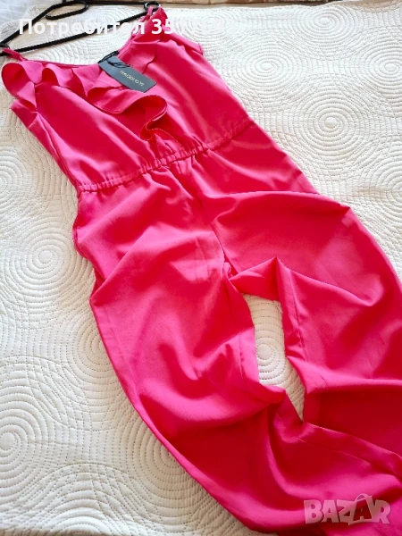 Дамски гащеризон с тънка презрамка, харбалички и джобове. Размер М . Нов.