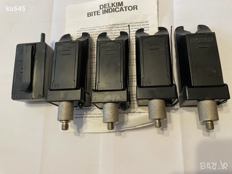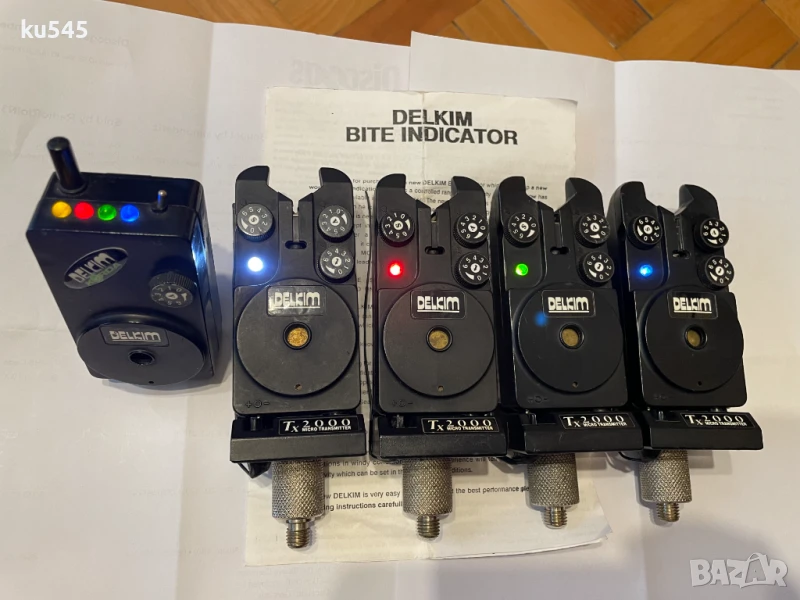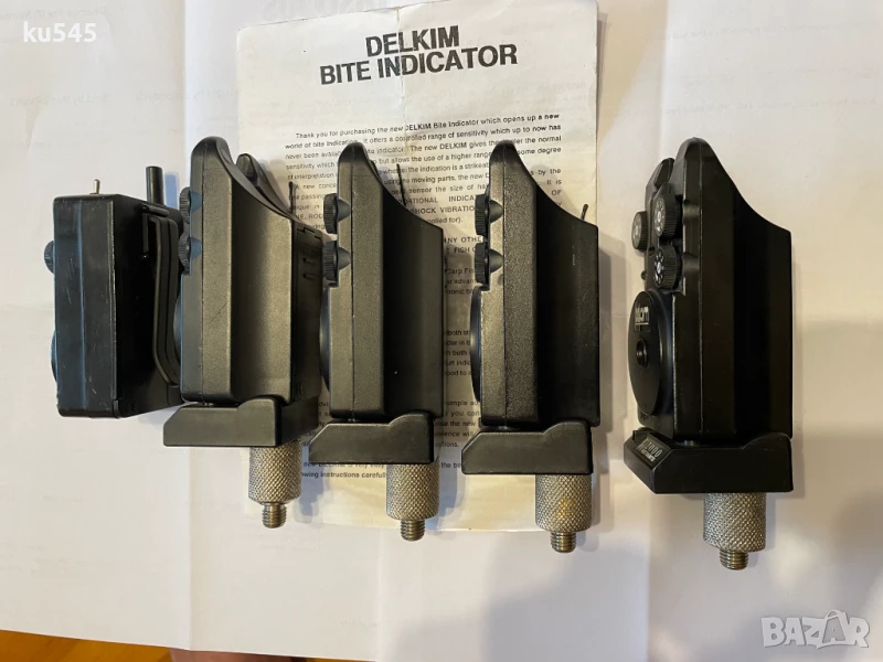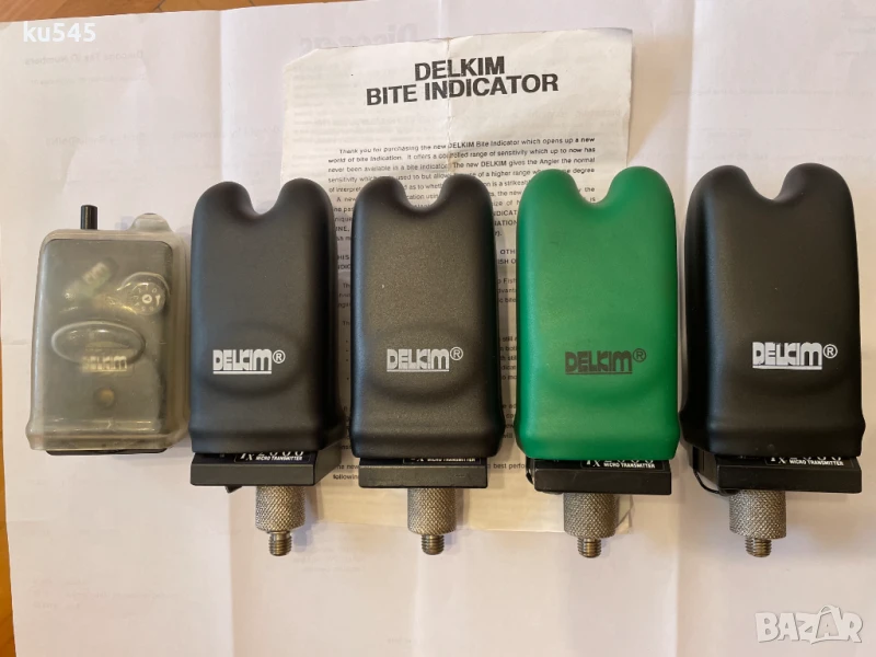 Продавам комплект от 4 бр. сигнализатори Delkim MK1 с прикачен Delkim Tx 2000 micro transmitter и приемник / майка Delkim Rx 2004 mini receiver.