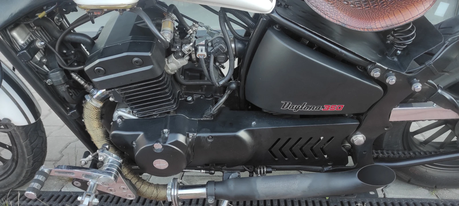 Първи собственик след вноса ! Мотора се кара всеки сезон, запазен и добре поддържан, държи се в гараж! инжекцион, водно охлаждане, автоматичен стартер , четиритактов с мокър съединител! гумите са в добро състояние! Цената подлежи на коментар в нормални граници! Марката е Leonart , модел Daytona 350 ! С мотора се дават и оригиналните части преди да се преправи ( ауспуси, заден калник , облегалка, двойна седалка ) ревизирани колове и скоростна кутия!