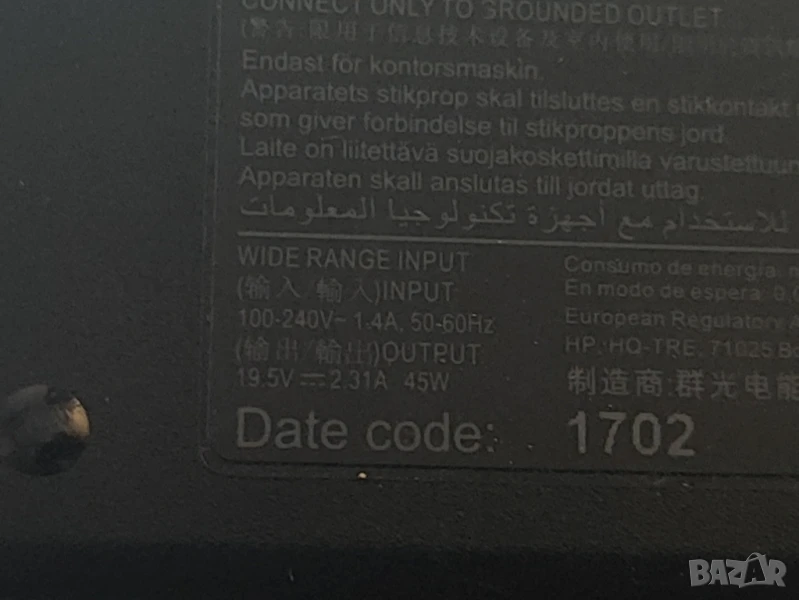 Оригинално зарядно за HP 19.5V / 2.31A / 45W, снимка 1 - Лаптоп аксесоари - 51076192 Оригинално зарядно за HP 19.5V / 2.31A / 45W, снимка 2 - Лаптоп аксесоари - 51076192 Оригинално зарядно за HP 19.5V / 2.31A / 45W, снимка 3 - Лаптоп аксесоари - 51076192 1/3