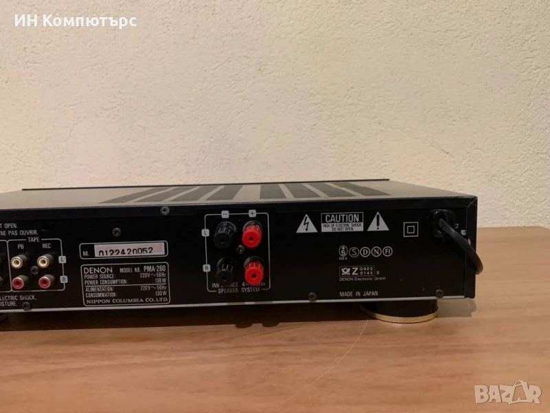 Phono MM, CD, Tuner, Aux, Tape (вход/изход), жак за слушалки, два чифта колони