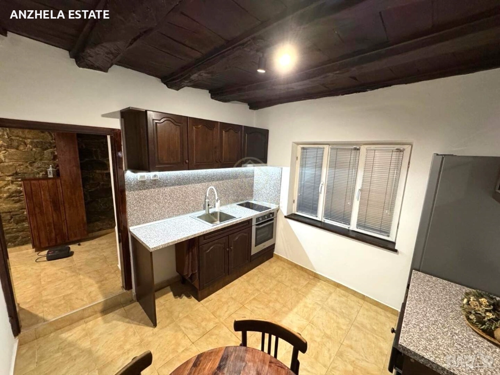 Запазени автентични дървени греди, които придават уют и характер на помещението