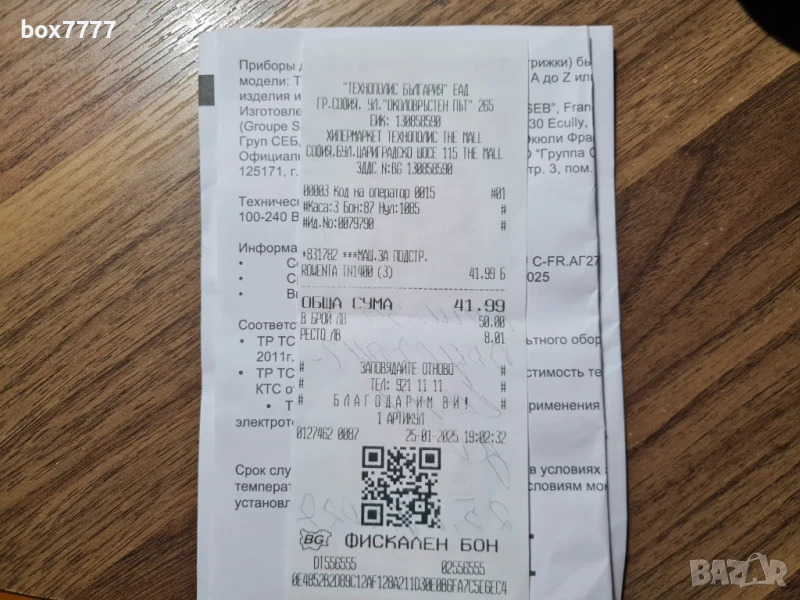 Гаранционен срок до .25.01.2027.