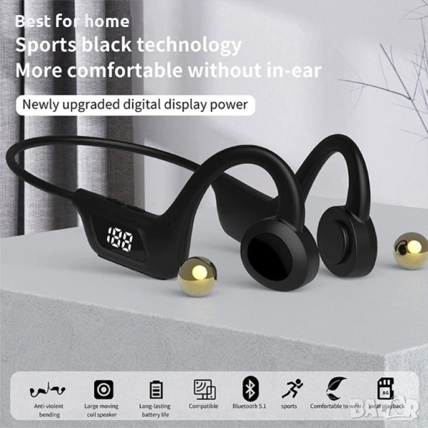 Слушалки с костна проводимост Bluetooth 5.1, безжични слушалки с отворено ухо, спортни слушалки с вграден микрофон, LED дигитален дисплей, водоустойчиви слушалки-тапи за бягане, тренировка, шофиране, онлайн обучение.