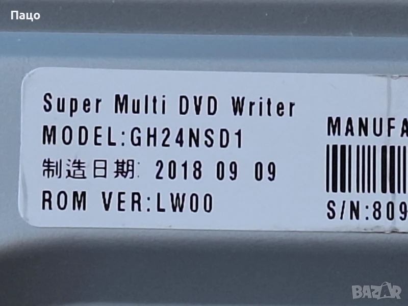 Оптично устройство LG GH24NSD1 - LG GH24NSD1 DVD RW BLACK/RET/тествано е/С опция преглед и тест е/Цената е Твърда/Символична/Технически параметри