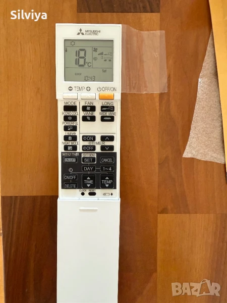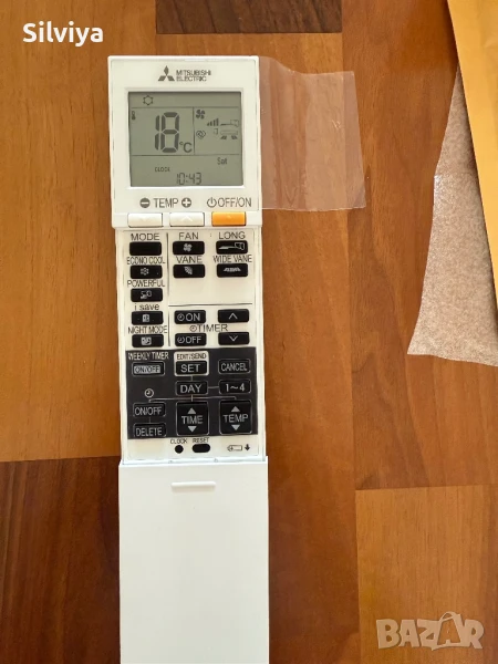 Дистанционно за климатик Mitsubishi Electric, дистанционното , на снимката една от тях се вижда , че е с целуфанче на дисплея все още, на друга от снимките съм го махнала ,за да се види , че няма надраскано по дисплея.