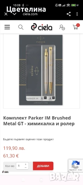 Комплект Parker IM Brushed Metal GТ - химикалка и ролер -99 лв. → Обява 51078990