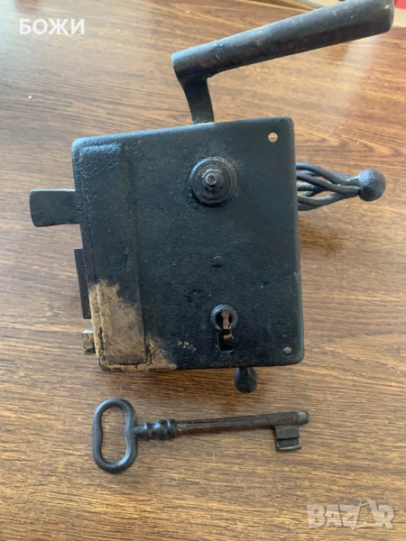 Продавам оригинална брава от масивно желязо с уникална кована дръжка и автентичен ръчно изработен ключ.