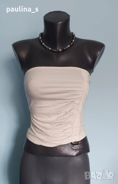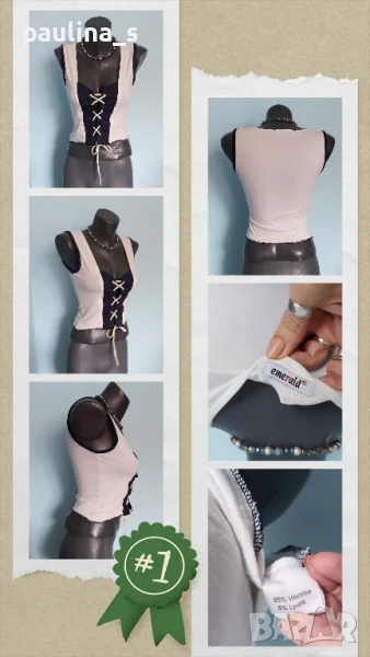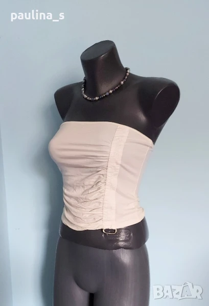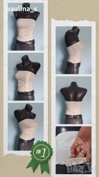 3️⃣. Колаж / S / XL - "Free style" fashion factory. Цената е крайна 9,99лв / 5 евро. Еластично бюстие декорирано с кожена лента и асиметричен модел, с кожена лента и халка. Материята вискоза и ликра, доста еластична и покрива няколко размера. Една бройка е, не е чисто ново, но е без дефекти, скъсано или други подобни, като ново.