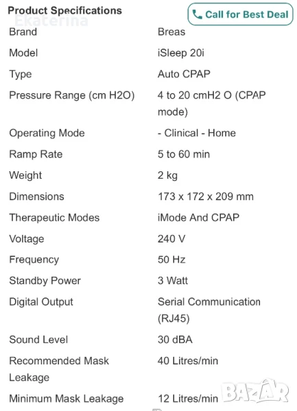 сънна апнея iSleep 20i auto CPAP на шведската марка Breas. Закупен от САЩ, малко ползван,
