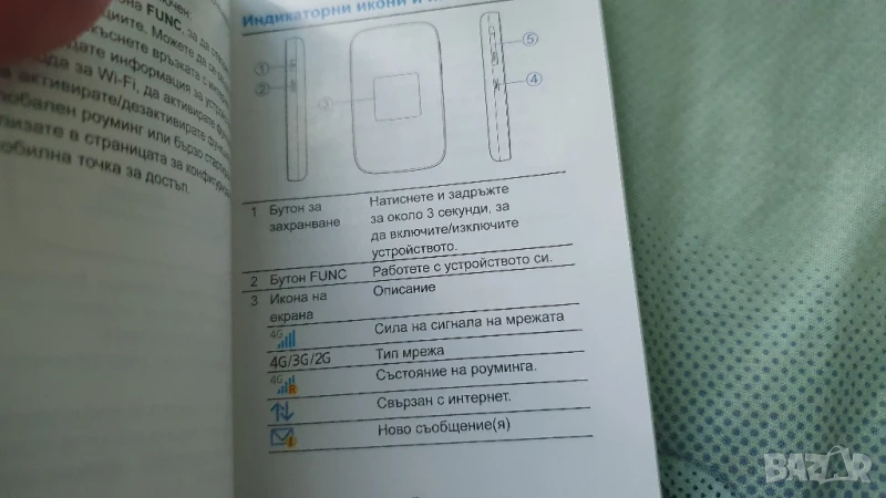 Продавам ZTE 4G рутерче, ( бисквитка) страхотно за пътувания, или в зона без интернет доставчик! Модел: MF971LS Кутията е от: MF971RS Идентични инструкции в книжката. Може да си влизате в настройките, както от самото рутерче в менюто, Така и през лайфая директно, на сайта, за допълнителни настройки. Настройване до колко да си ограничите интернета, и после ви предупреждава! И се изключва. Батерията му издържа доста! Работи перфектно. Продавам го: Кутия, книжки с инструкции и спецификации + ново кабелче. Отключено, към всеки оператор! Повече информация в нета и в обявата ми. ( Снимките )